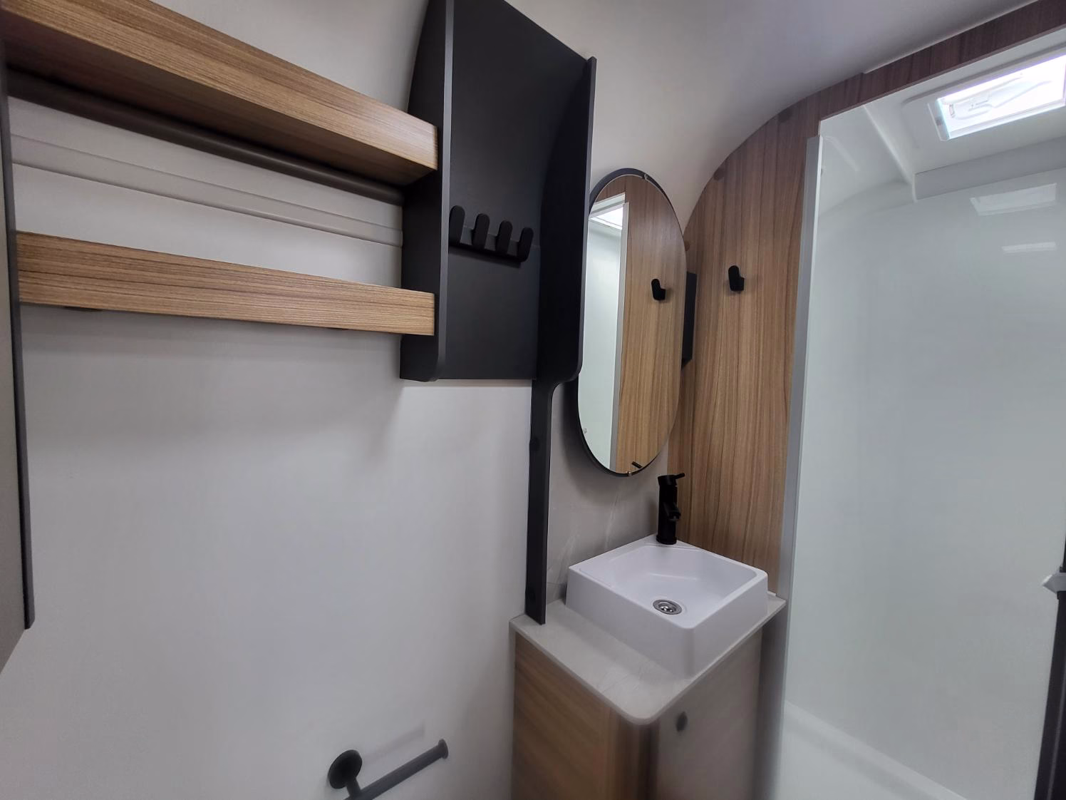 This model is perfect for couples or young families looking for a compact, easy-to-tow caravan that doesn’t skimp on features or style. Whether you’re heading to the hills or a coast-side retreat, the 440 is ready for your next chapter.