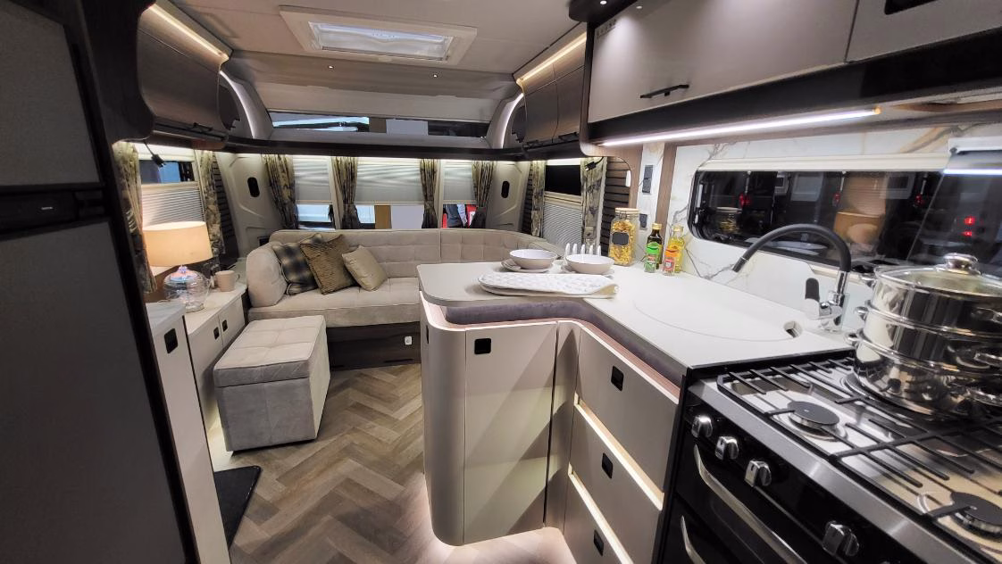 Designed for year-round touring, the Lusso II combines elegant styling, advanced features, and meticulous craftsmanship – the ultimate statement in luxury caravanning.