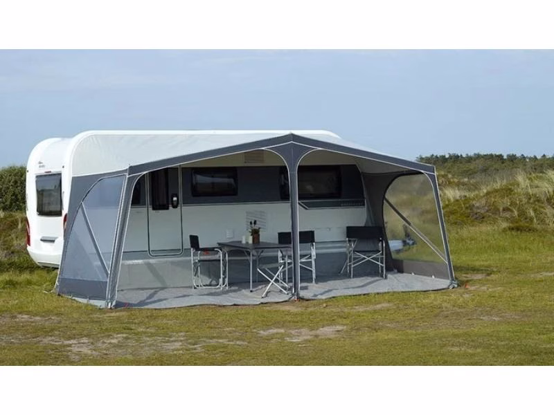 The Isabella Sunshine Plus Canopy for caravans offers the greatest possible stability whilst also being light in weight. It features zip pockets on the front poles which provide extra stability and also preventing the canvas from flapping in the breeze.