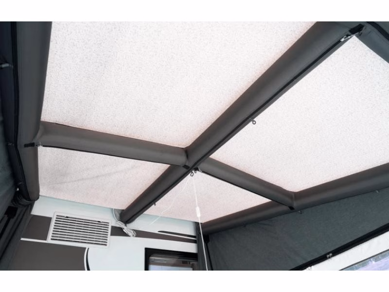 The Ventura Air Alto is a spacious air porch awning for motorhomes that offers ample space and flexible solutions. The included foam pads ensure a tight fit against the motorhome and can also be placed under the air tubes for uneven terrain. Also includes a connection pad that can be folded in half to create a tight connection between the awning and the motorhome. Thanks to the smart air system where all air tubes are connected, you can quickly inflate from one valve, minimise the risk of leaks and enjoy an awning that remains stable even when the weather changes.
